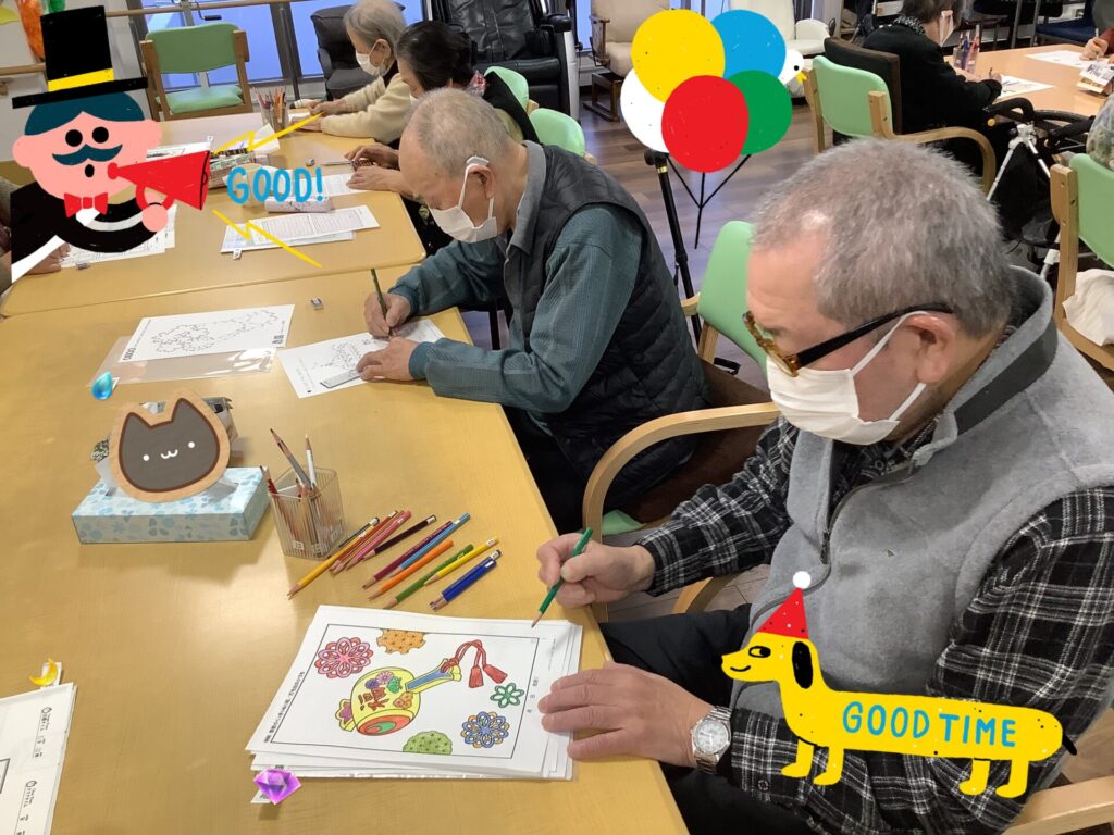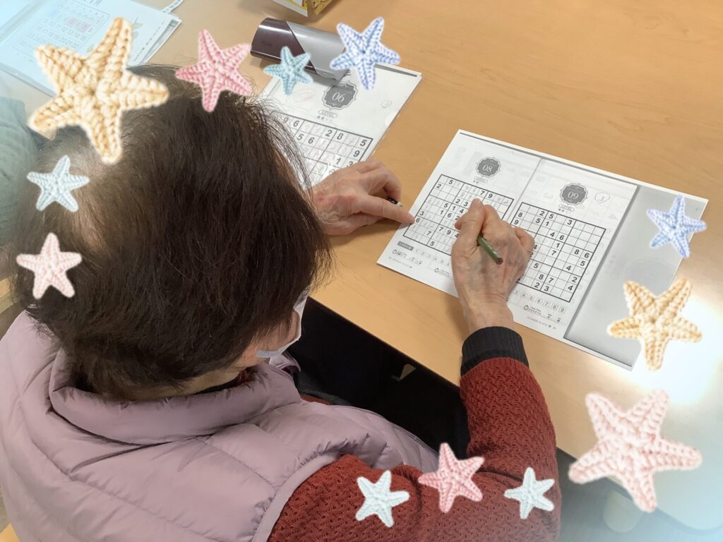 塗り絵、数独、点つなぎなど皆さん真剣に取り組んでくださってます🥰