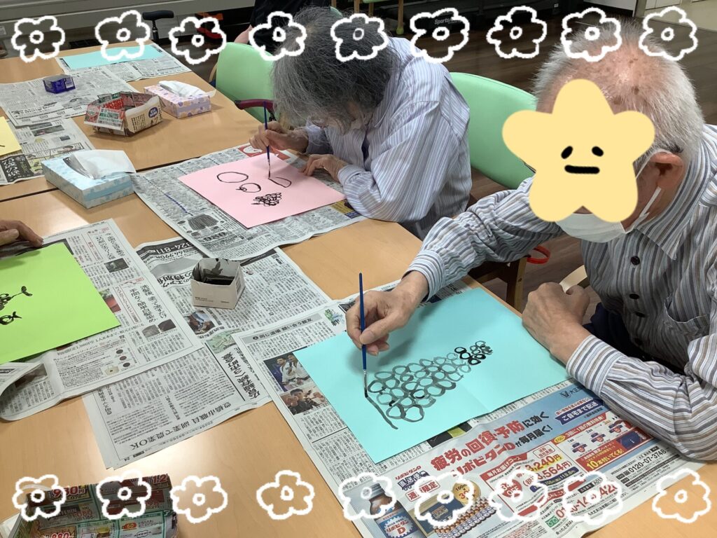 有松デイサービスでは、先日のレクリエーションで水墨画を開催しました🖌️