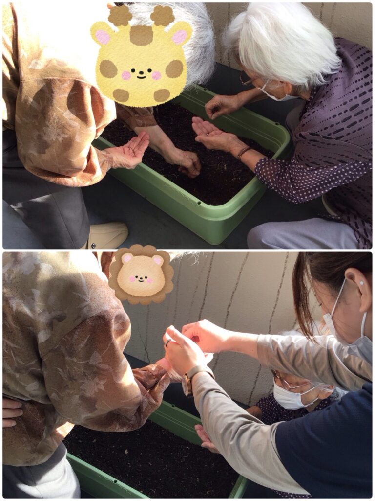 初夏に植えた小松菜の種の残りを利用者様に蒔いてもらいました‼️