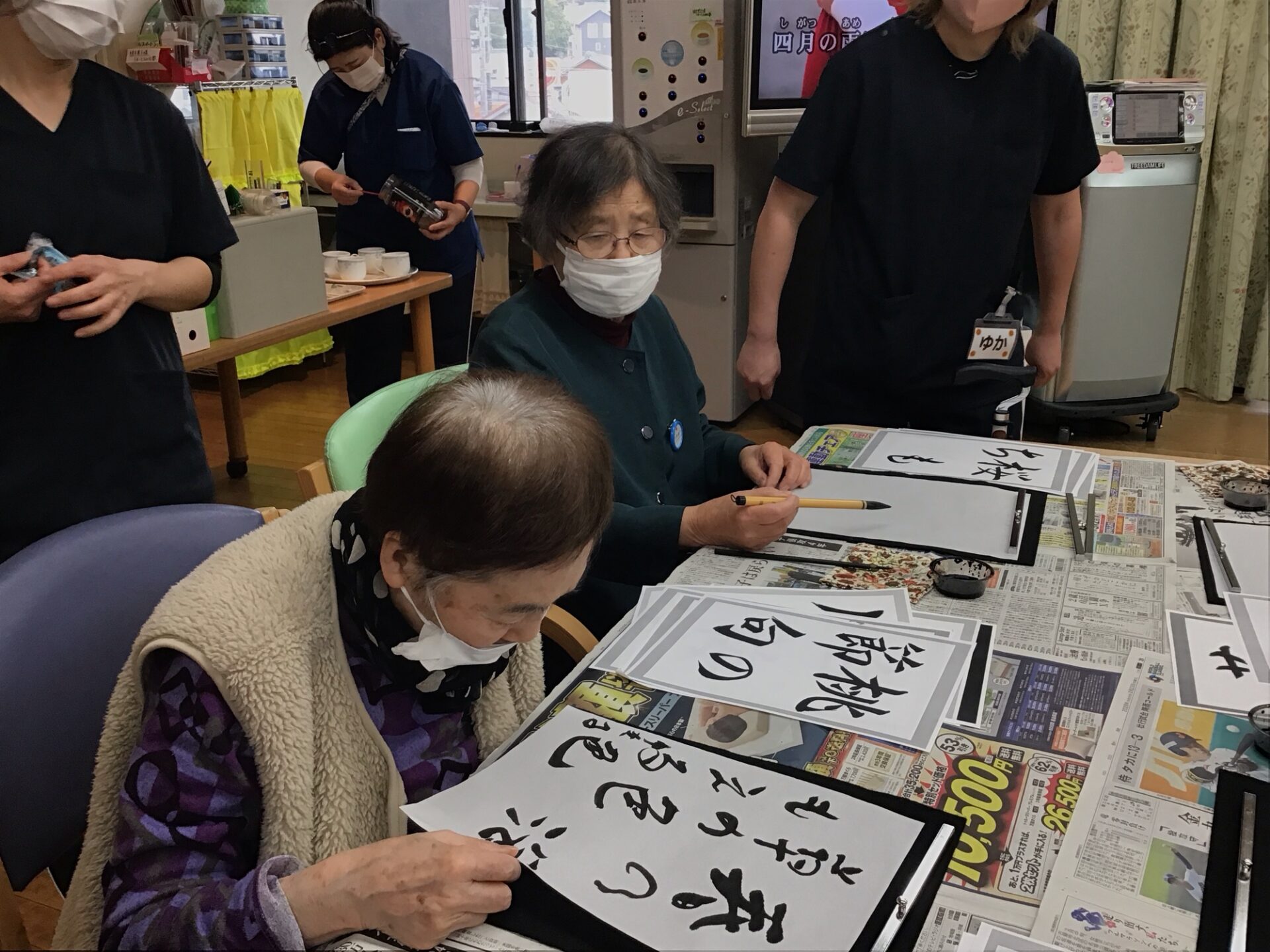 一足先に春を感じるよう、春にちなんだ書道を行いました。