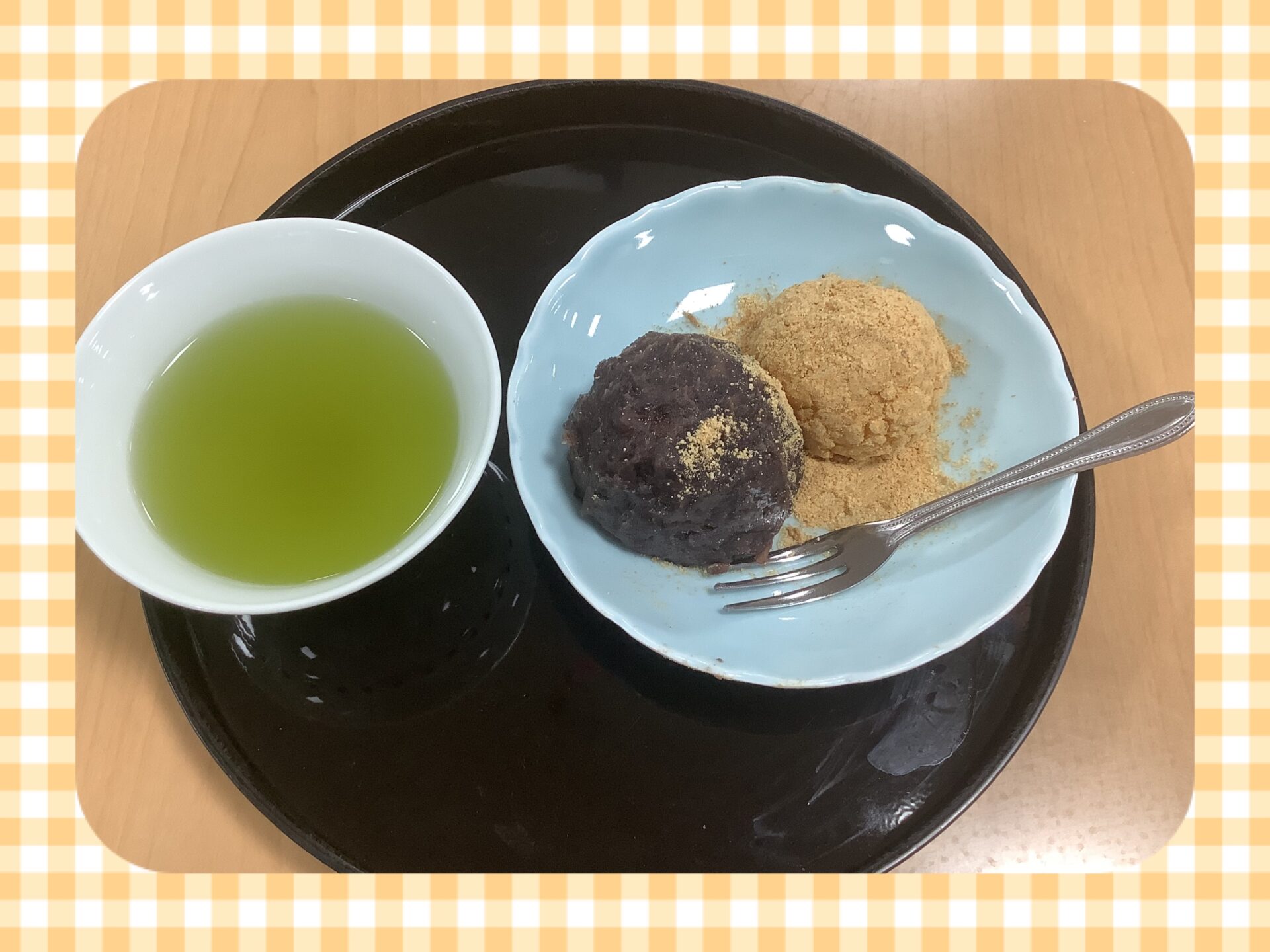 粒あんときな粉です。皆さんと一緒にいただきまーす。。