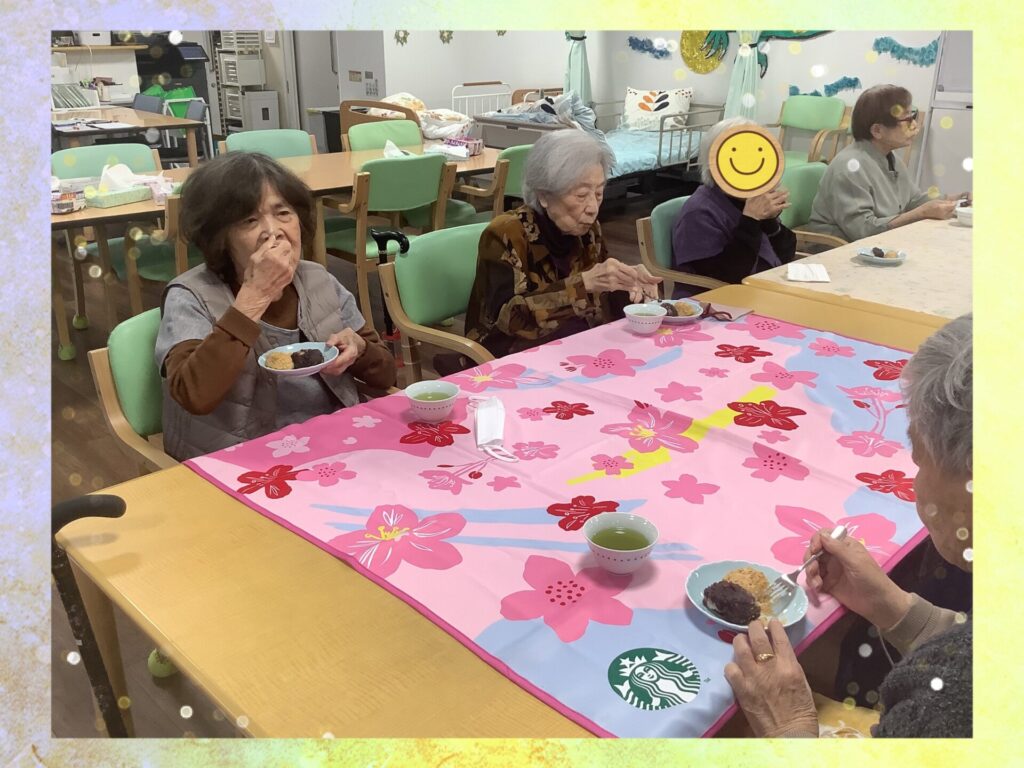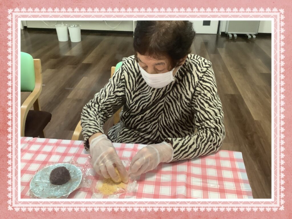 さて、先日ですが、毎回好評のおやつレクリエーションを行いましたよ。メニューは皆様の大好きなおはぎ