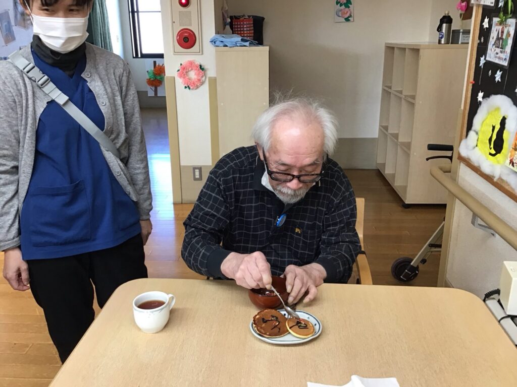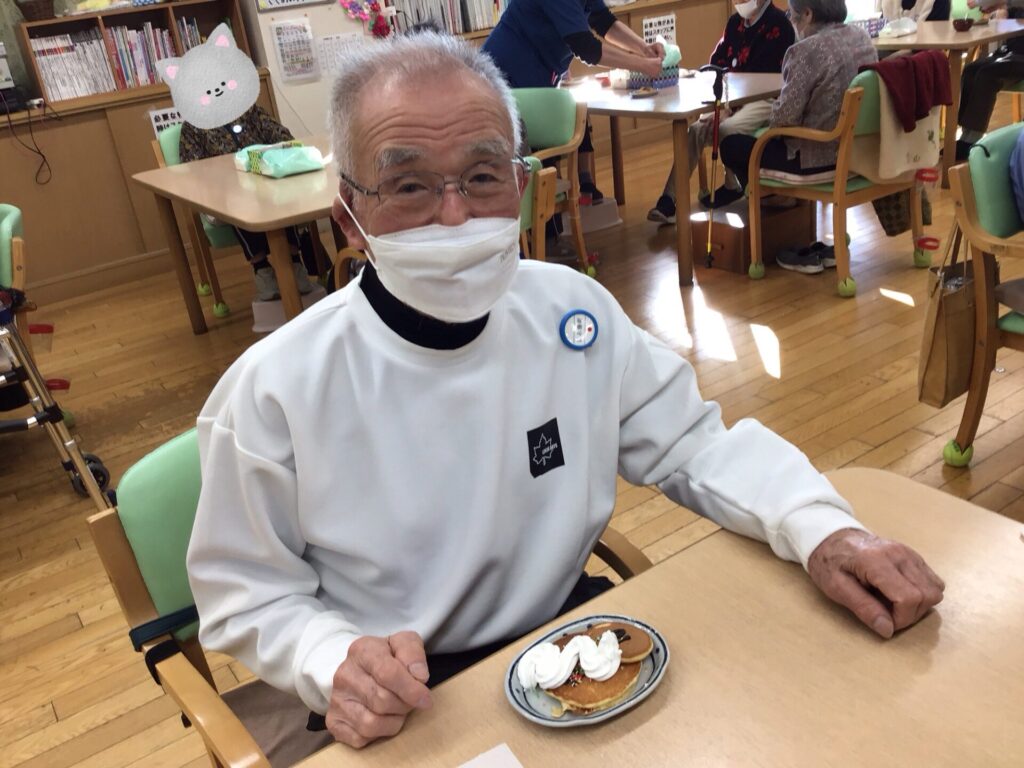 スタッフが焼いて、利用者様にはトッピングをして召し上がって頂きました